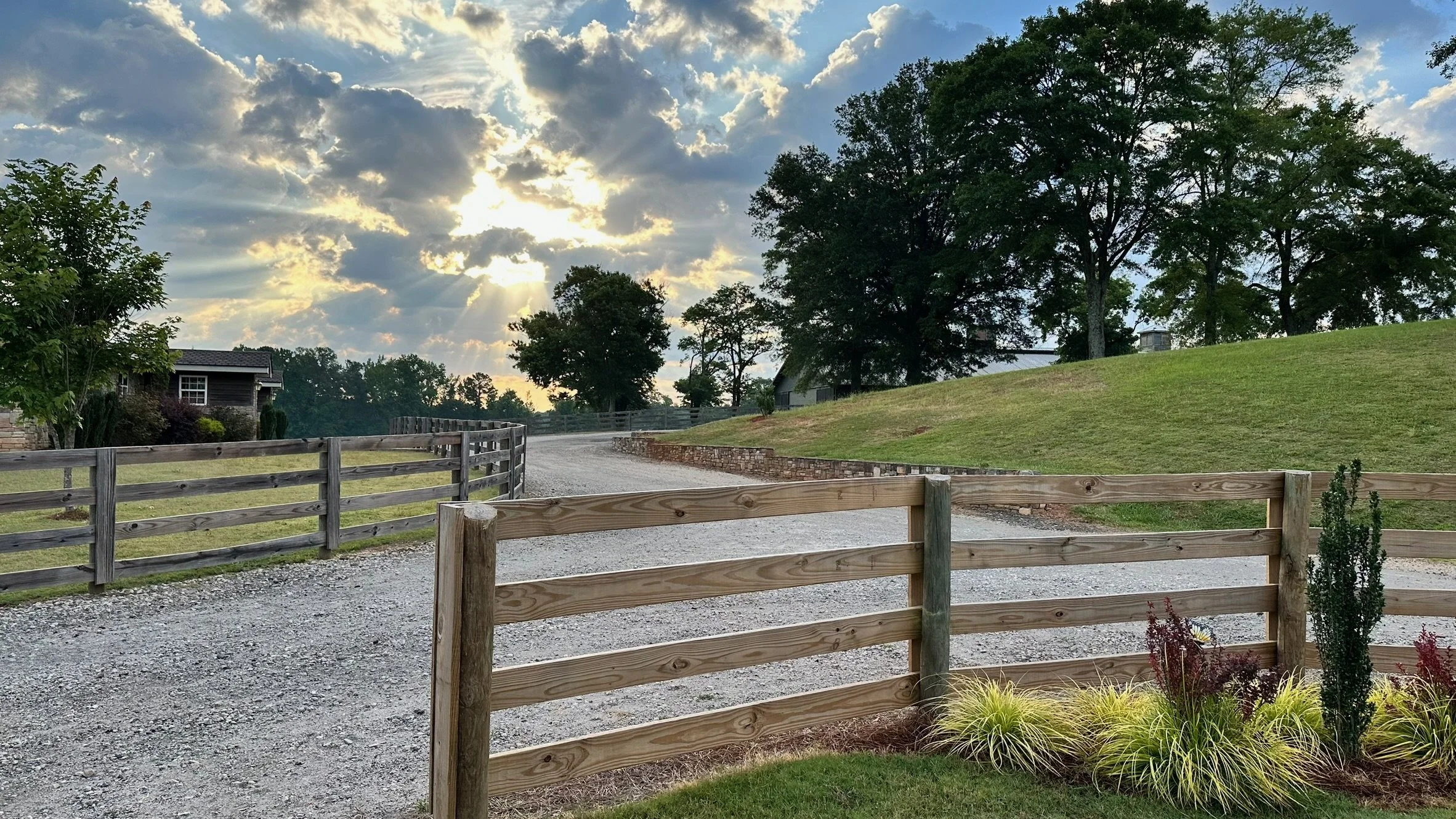Meriwether Manor’s venue sites have independent and shared parking areas designed to support dual weddings without cross-flow. Utilities, lighting, road improvements, and drainage have been planned to support heavy event activity. The newly paved 14 ft wide, ½ mile access road improves guest experience and vendor access, enhancing safety and operational efficiency.